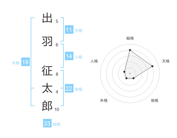 出羽 征太郎さんを姓名の画数から五運を鑑定