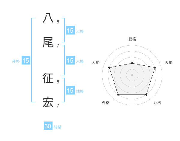 八尾 征宏さんの総格は30画の2点!