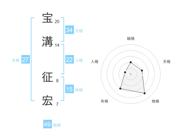 宝溝 征宏さんの総格は49画の2点!