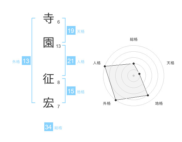 寺園 征宏さんの外格は13画の5点!