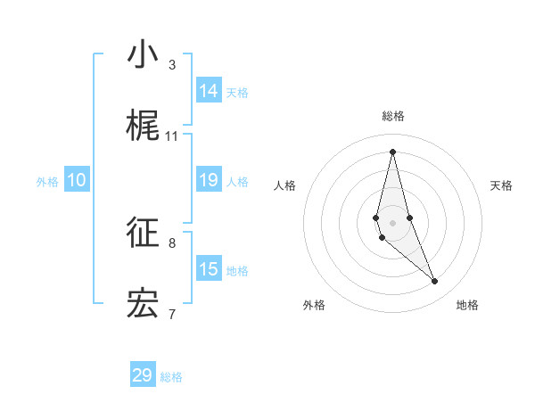 小梶 征宏さんの総格は29画の4点!