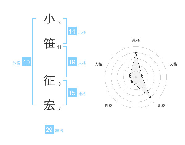 小笹 征宏さんの総格は29画の4点!