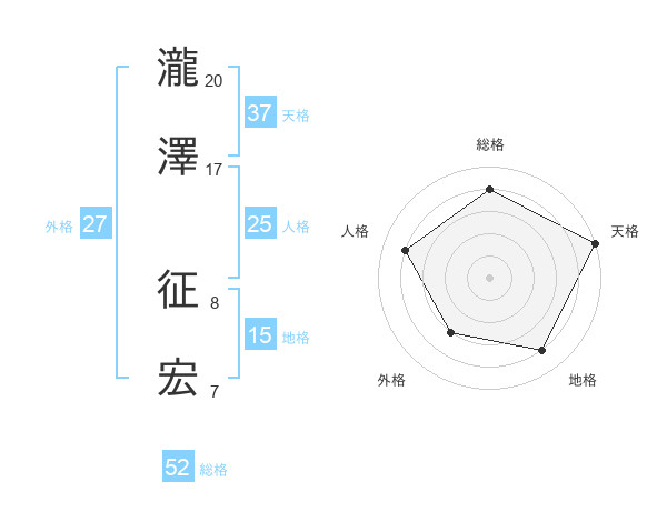 瀧澤 征宏さんの天格は37画の5点!