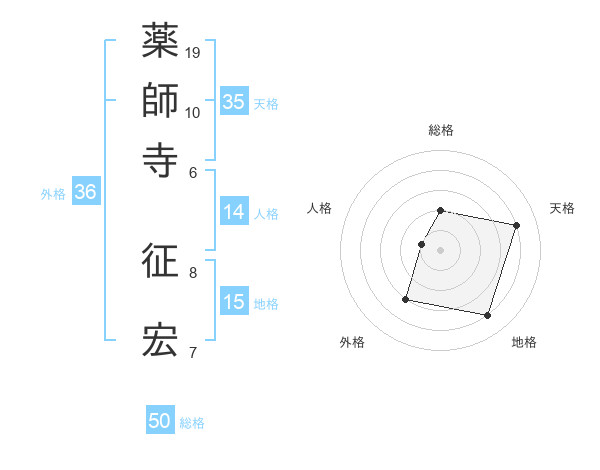 薬師寺 征宏さんの総格は50画の2点!