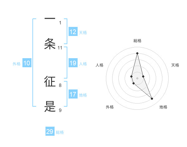 一条 征是さんの総格は29画の4点!