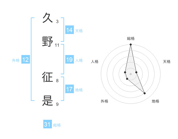 久野 征是さんの総格は31画の5点!