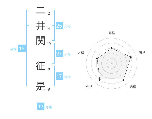 二井関 征是さんの天格は25画の4点!