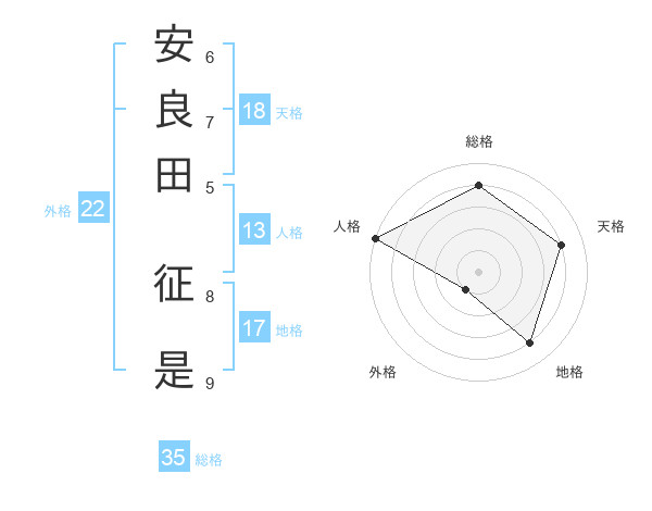安良田 征是さんの総格は35画の4点!