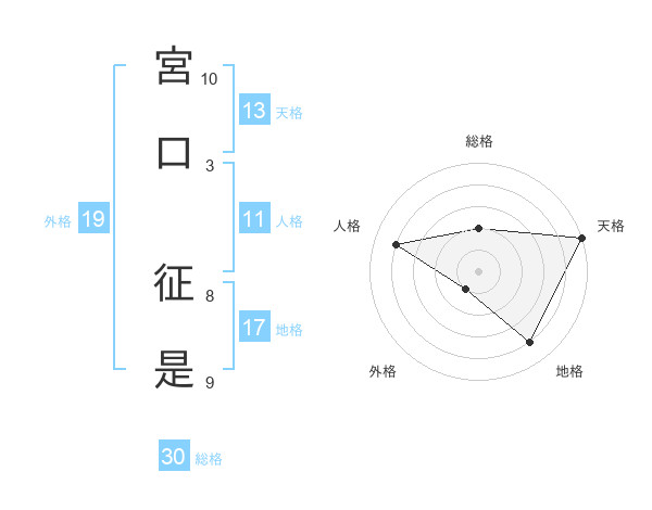 宮口 征是さんの総格は30画の2点!