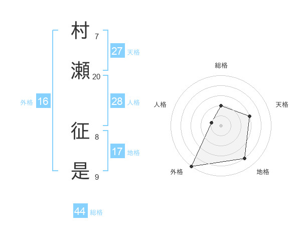 村瀬 征是さんの外格は16画の5点!