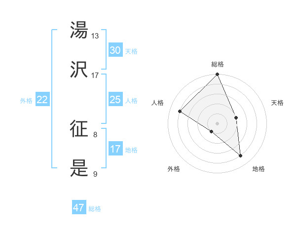 湯沢 征是さんの総格は47画の5点!