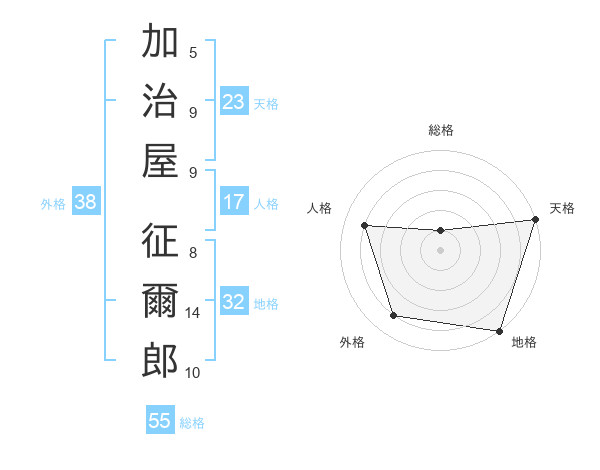 加治屋 征爾郎さんを姓名の画数から五運を鑑定