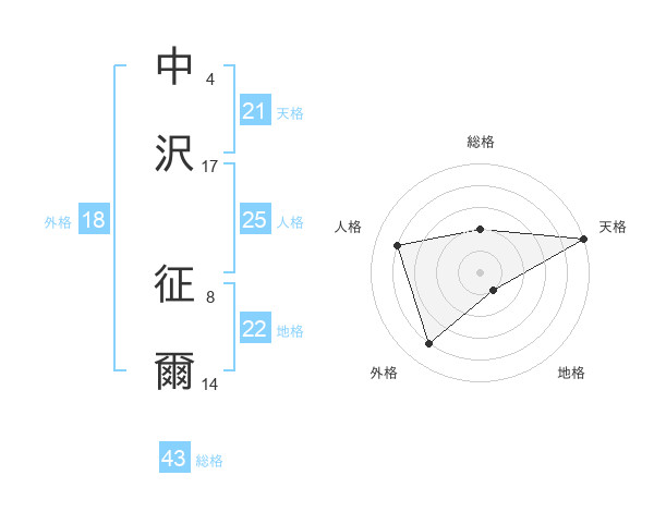 中沢 征爾さんの外格は18画の4点!