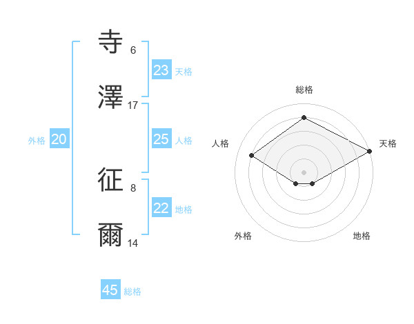 寺澤 征爾さんの天格は23画の5点!