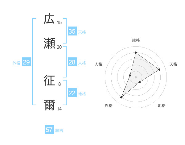広瀬 征爾さんを姓名の画数から五運を鑑定