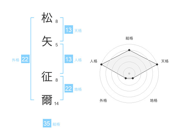 松矢 征爾さんを姓名の画数から五運を鑑定
