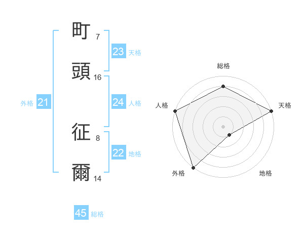町頭 征爾さんの総格は45画の4点!