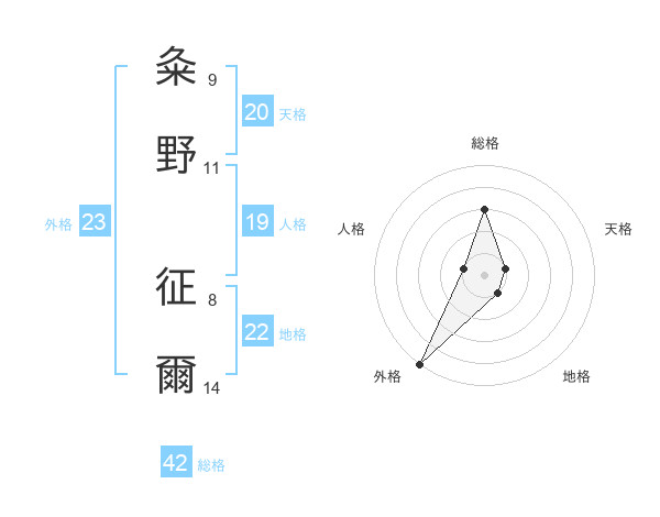 粂野 征爾さんを姓名の画数から五運を鑑定