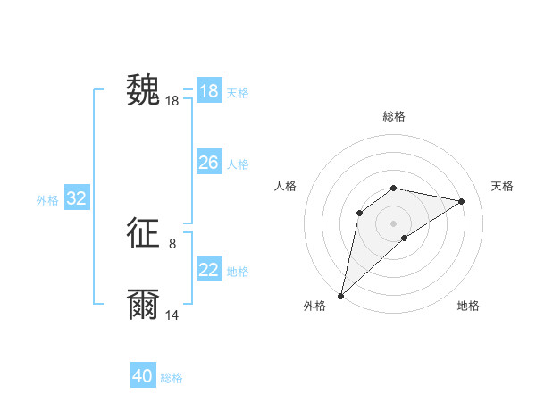 魏 征爾さんの総格は40画の2点!