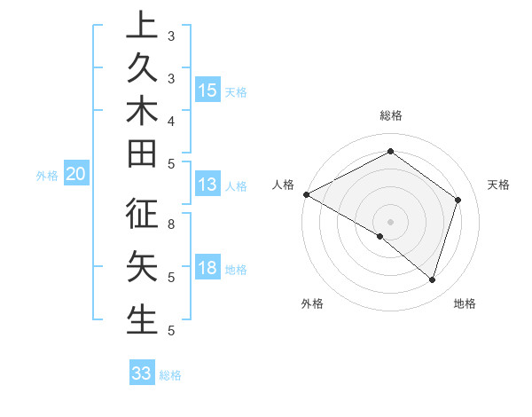 上久木田 征矢生さんを姓名の画数から五運を鑑定