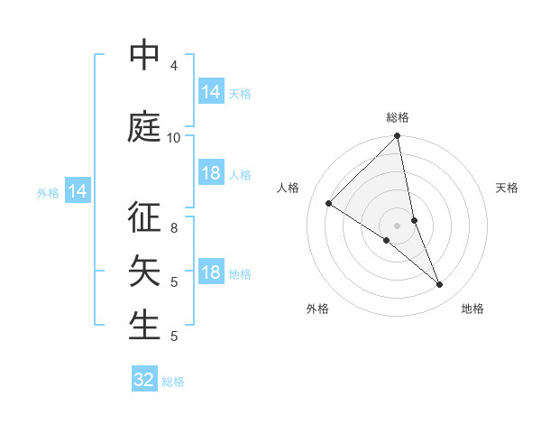 中庭 征矢生さんを姓名の画数から五運を鑑定
