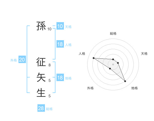 孫 征矢生さんの総格は28画の1点!