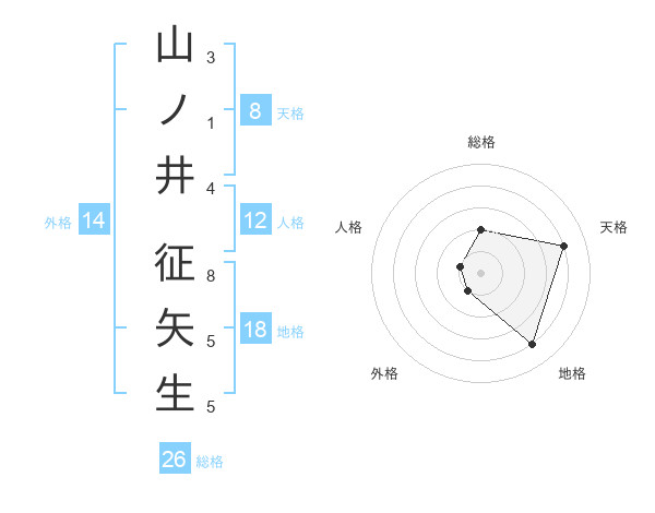山ノ井 征矢生さんを姓名の画数から五運を鑑定