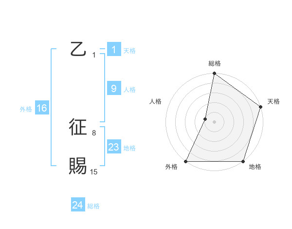 乙 征賜さんの地格は23画の5点!