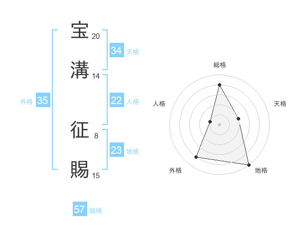 宝溝 征賜さんの総格は57画の4点!