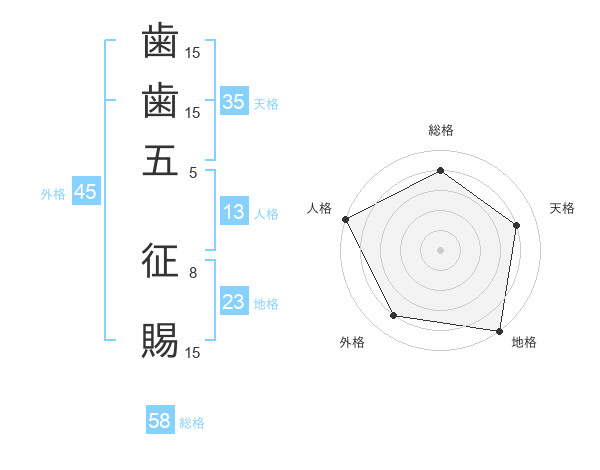 歯歯五 征賜さんの外格は45画の4点!