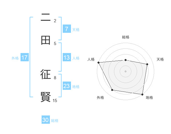 二田 征賢さんの天格は7画の4点!