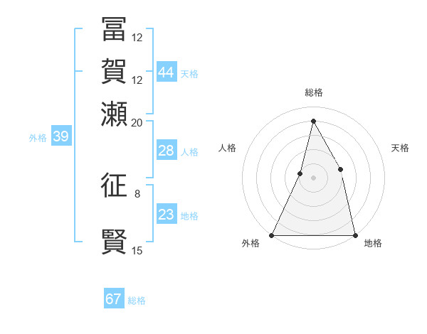 冨賀瀬 征賢さんの総格は67画の4点!