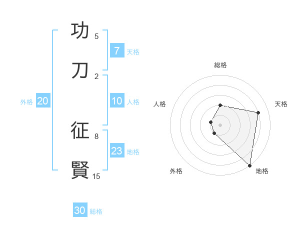 功刀 征賢さんの総格は30画の2点!