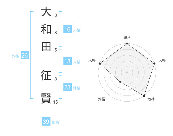 大和田 征賢さんを姓名の画数から五運を鑑定