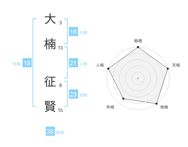 大楠 征賢さんを姓名の画数から五運を鑑定