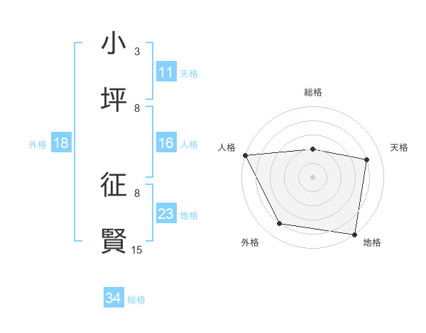 小坪 征賢さんの総格は34画の2点!