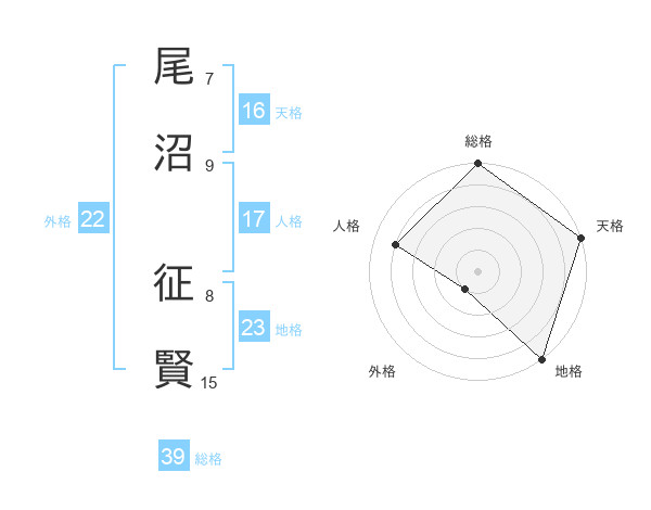尾沼 征賢さんの総格は39画の5点!