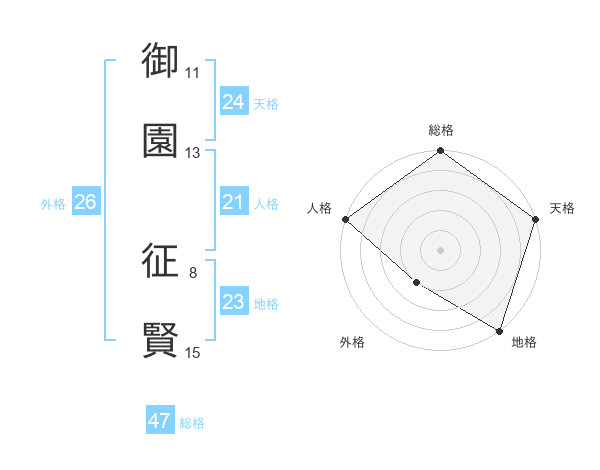 御園 征賢さんの総格は47画の5点!