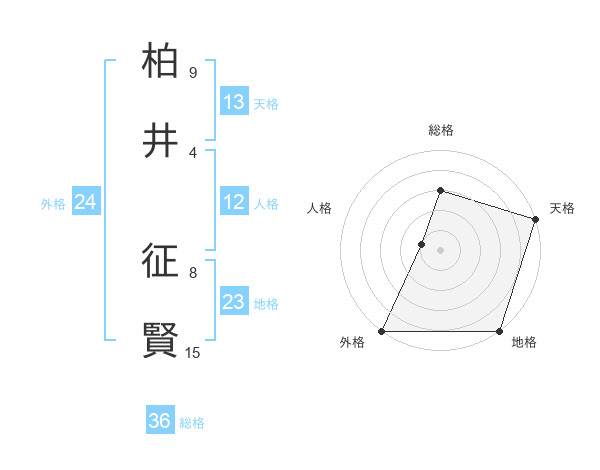 柏井 征賢さんを姓名の画数から五運を鑑定