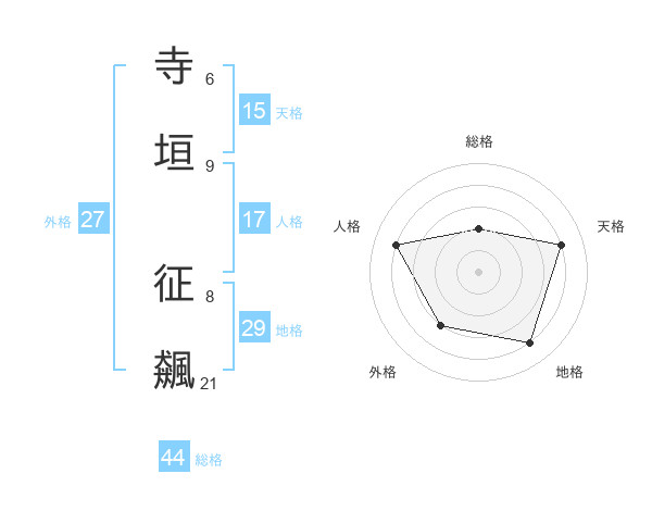 寺垣 征飆さんの総格は44画の2点!