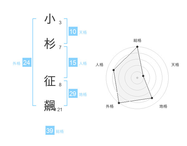 小杉 征飆さんを姓名の画数から五運を鑑定