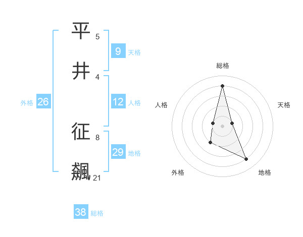 平井 征飆さんの総格は38画の4点!