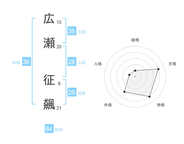 広瀬 征飆さんの天格は35画の4点!