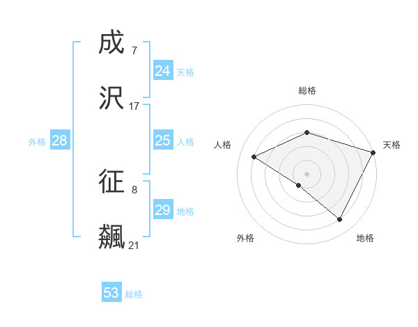 成沢 征飆さんを姓名の画数から五運を鑑定