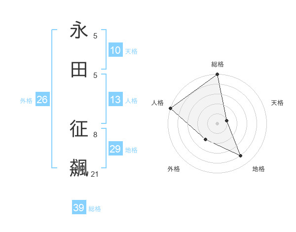 永田 征飆さんの総格は39画の5点!