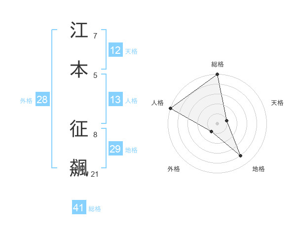 江本 征飆さんの総格は41画の5点!