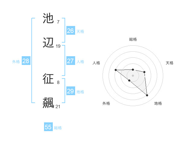 池辺 征飆さんの総格は55画の1点!
