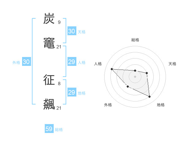 炭竈 征飆さんを姓名の画数から五運を鑑定
