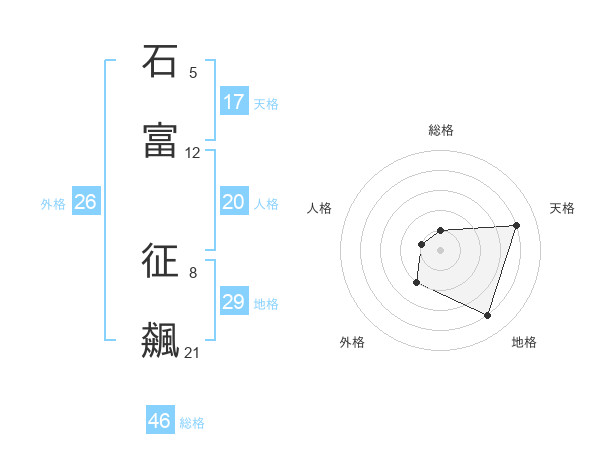 石富 征飆さんの天格は17画の4点!