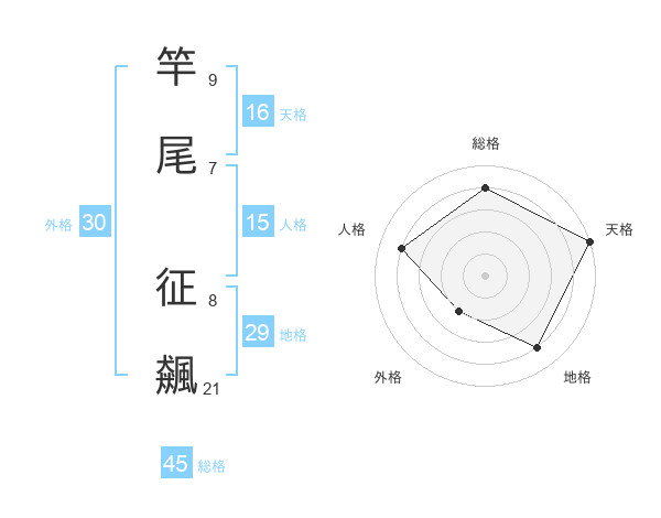 竿尾 征飆さんの総格は45画の4点!